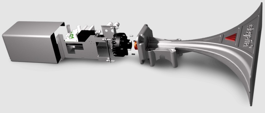Le son est diffusé par des haut-parleurs spécialement conçus pour l’extérieur, afin d’être audible dans toute la commune.